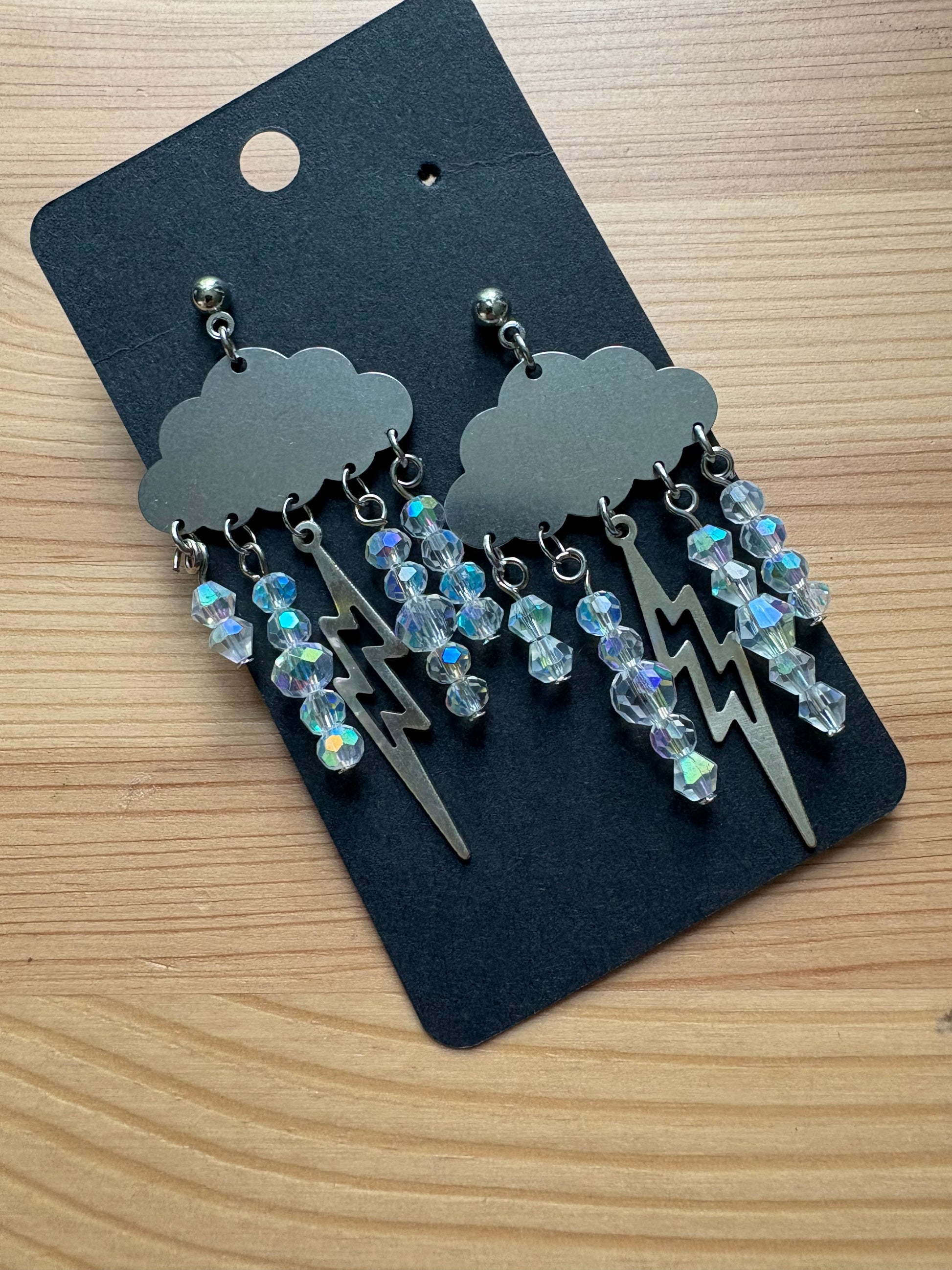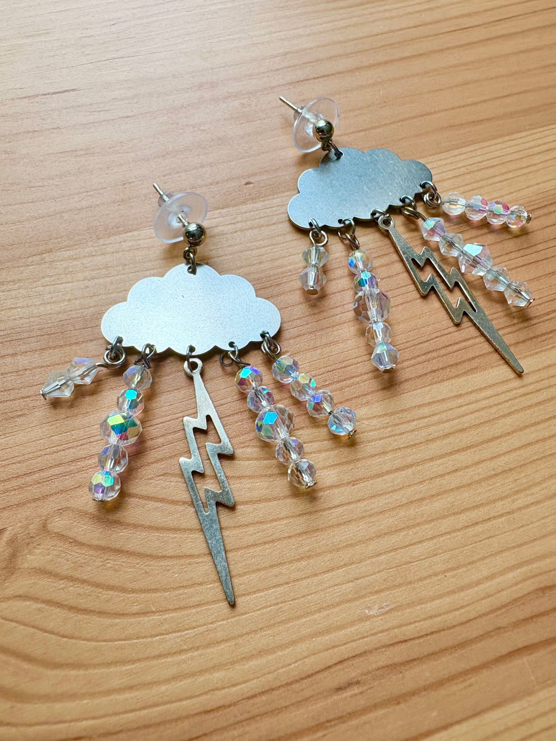 "Unleash your daring side with our Silver Thunder Storm earrings. Each dangling earring features a striking lightning bolt and sparkling crystals, capturing the energy of a stormy sky.