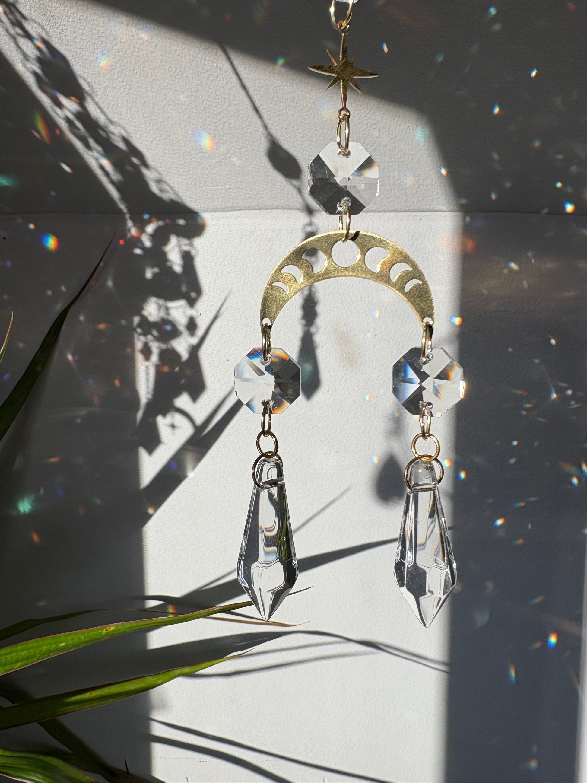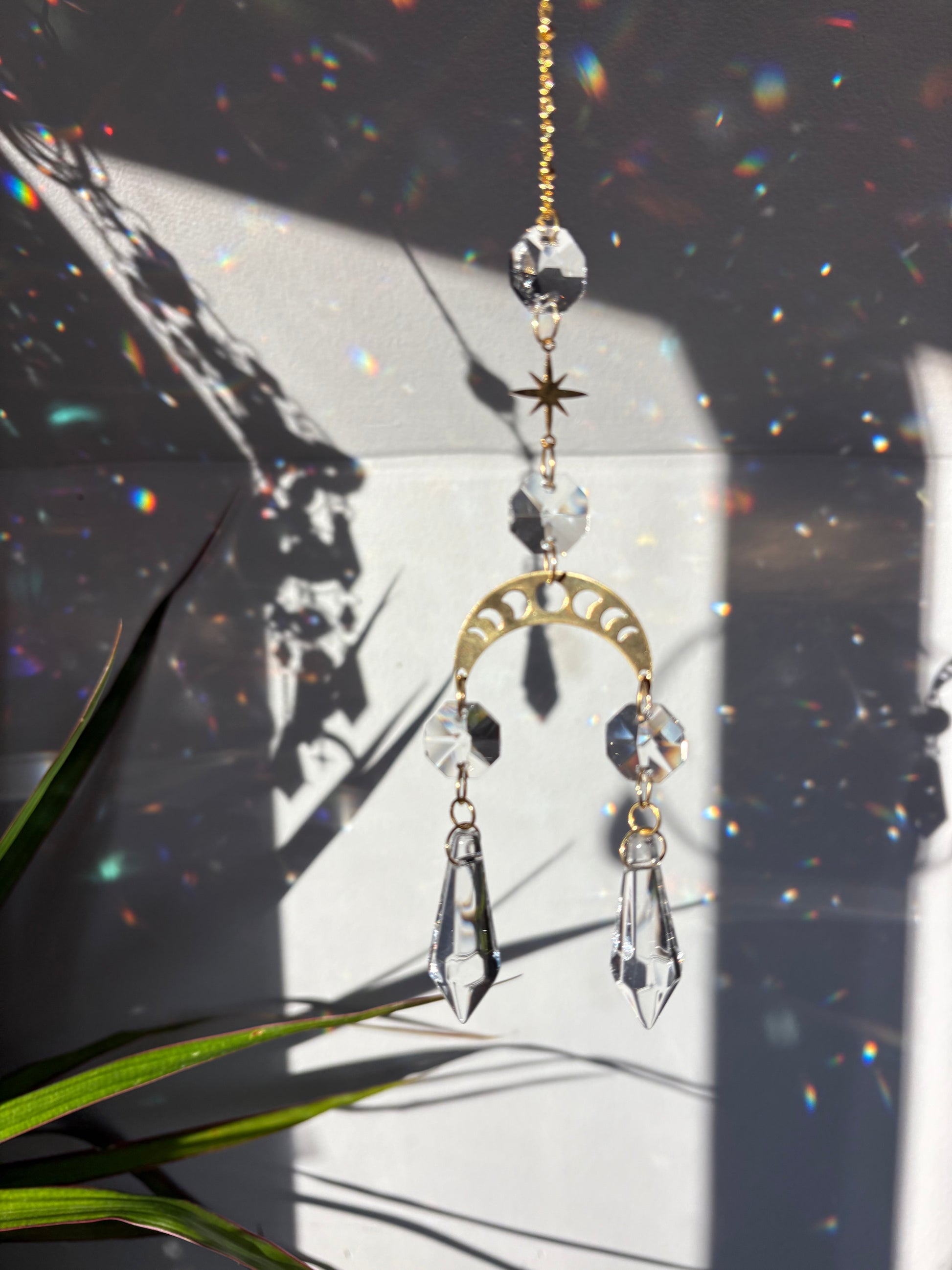 Gold and clear sun crystal sun catcher