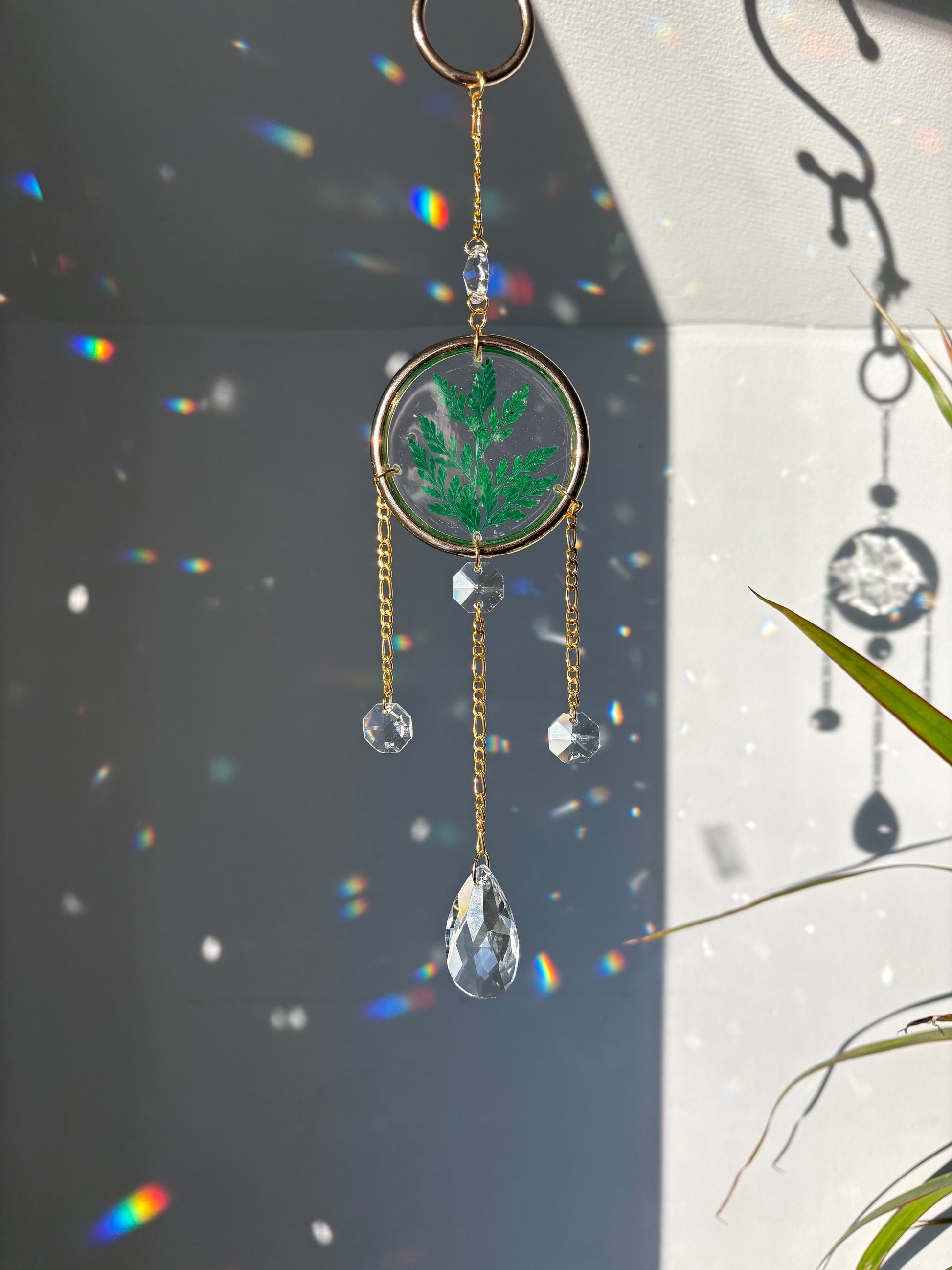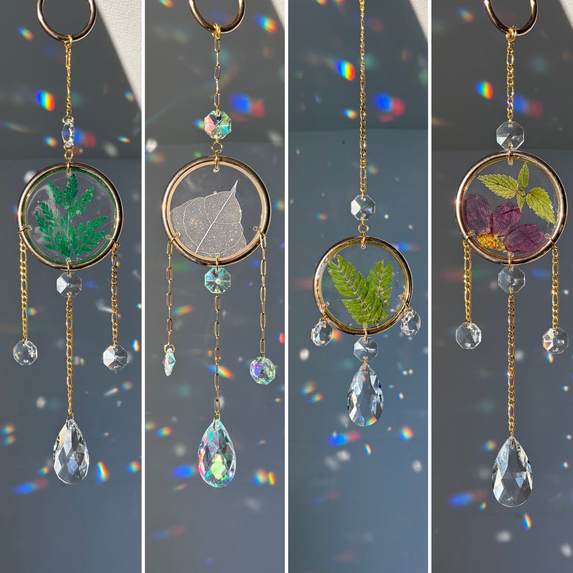 Introducing our Golden Resin Flowers, featuring stunning golden frames adorned with shimmering floral designs. Each frame also includes sun crystals adding a touch of sparkle to your decor. Perfect sun catchers, these flowers will brighten up any room with their elegant and radiant presence. Hanging 11” long